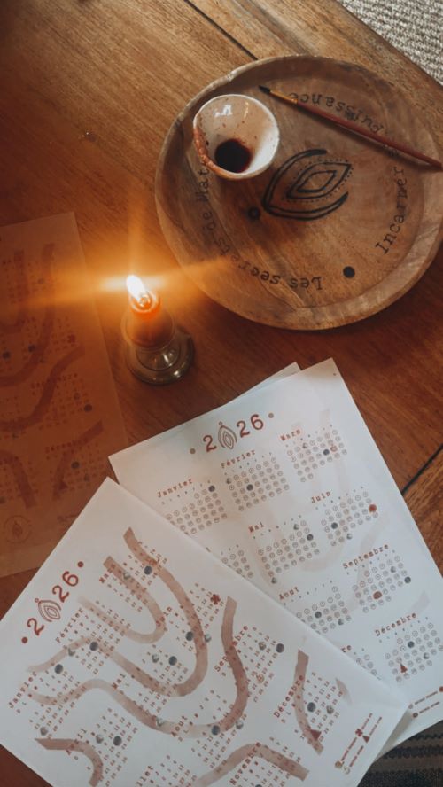 Ce calendrier est aussi une expérience, suivre ses cycles, apprendre à se connaitre, observer les lunes et les équinoxes.